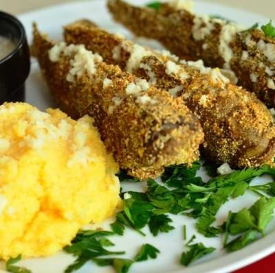 guvizi prăjiți. cu mujdei și mămăligă
