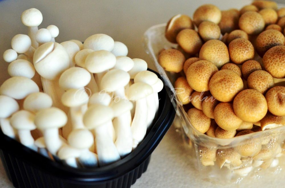 Zilele trecute mi-au căzut în coșul de cumpărături câteva caserole de ciuperci Shimeji. Sunt cremoase, cu un ușor gust parfumat de lămâiță, vedete în multe supe asiatice, dar pot fi o și o garnitură excelentă după ce au fost opărite în apă cu sare cam 5 minute. La galantarul cu zburătoare mi-au făcut cu ochiul niște ficați de curcan. I-am parcat și pe dânșii în coș, după care am început să mă gândesc la o finalitate practică.