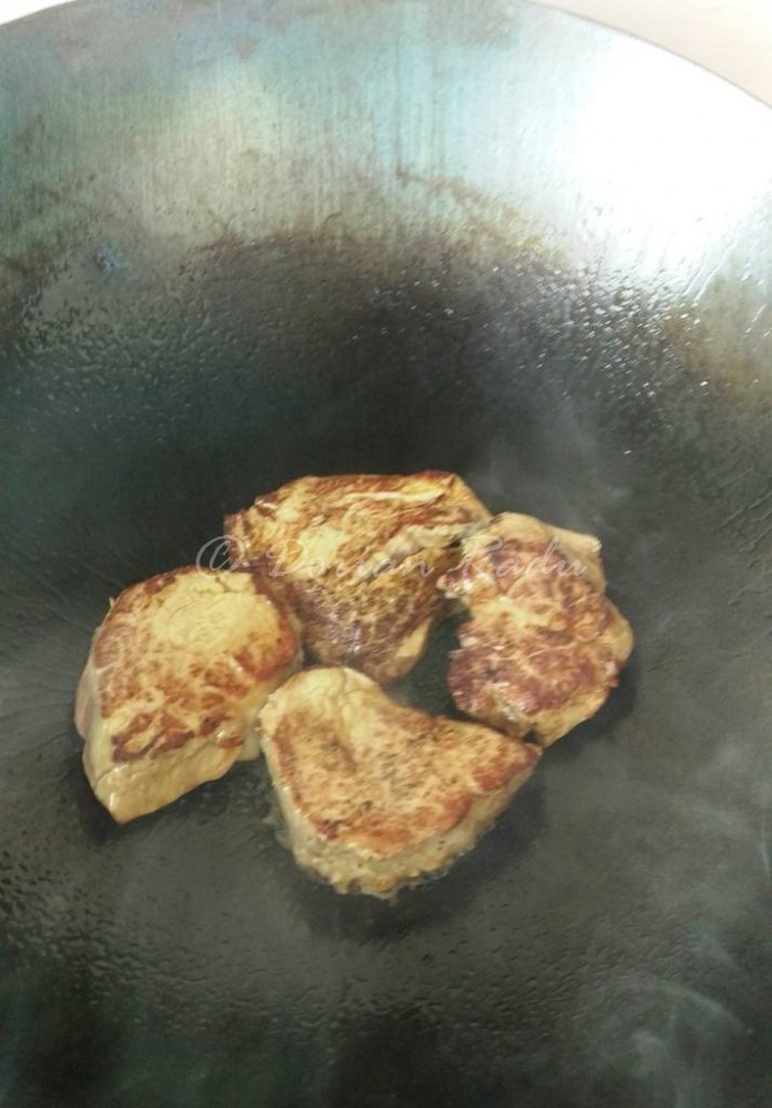 - am fript muschiul in sange, 2 minute pe fiecare parte, am intors la fiecare 30 de secunde
