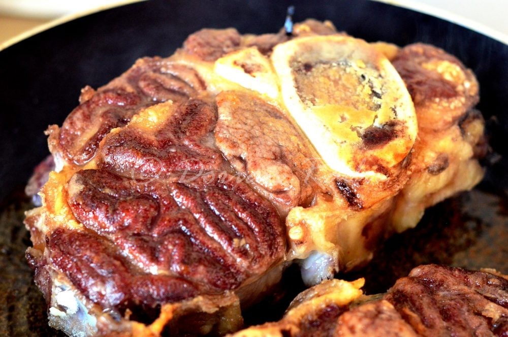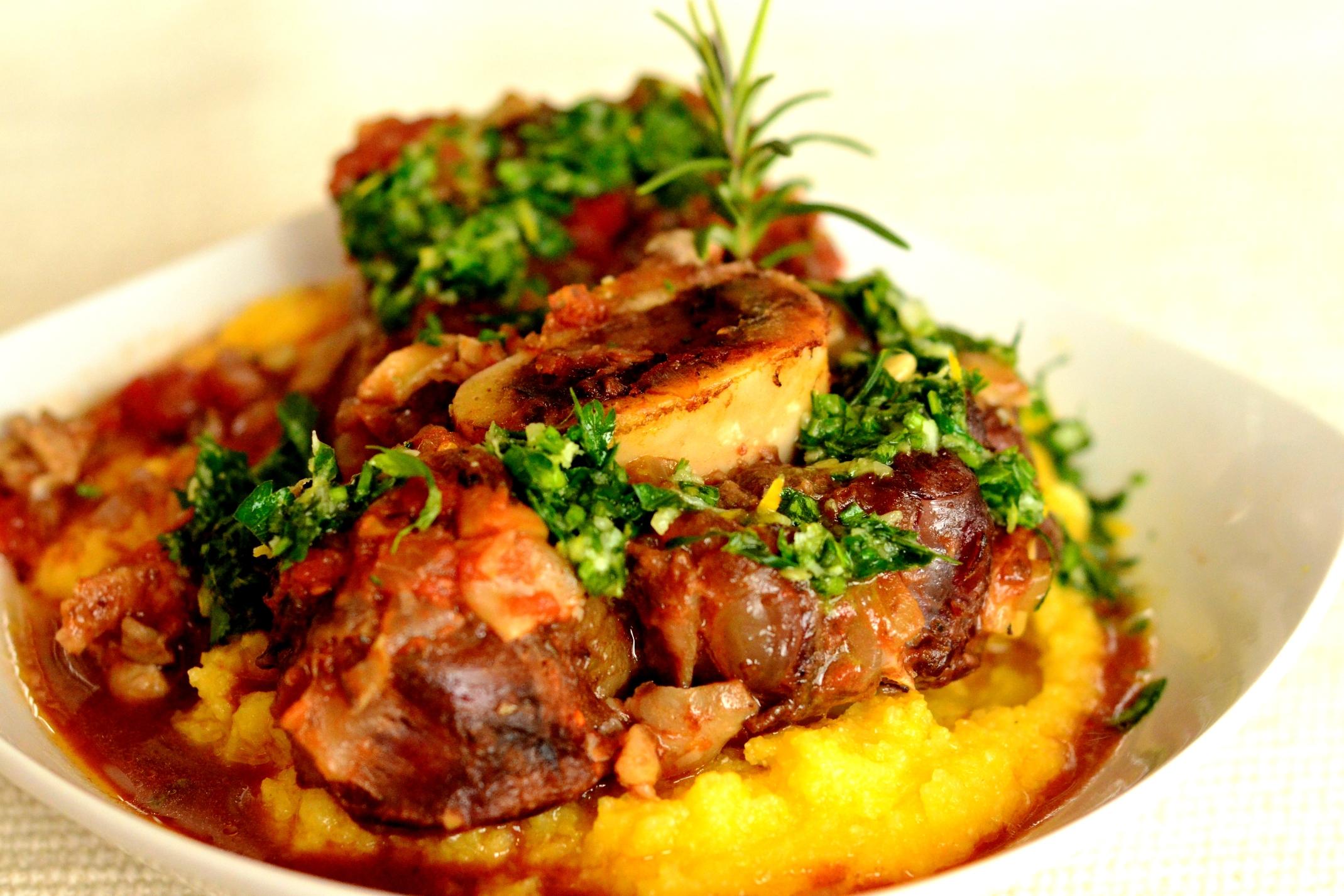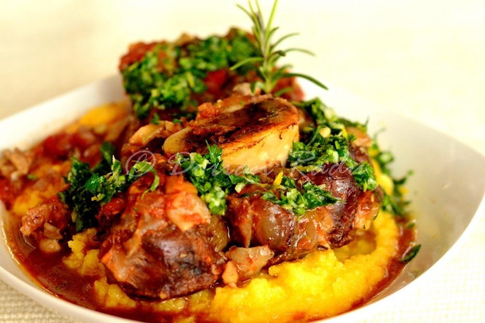 Am vrut să obțin gustul rasolului fraged și al gremolatei, dar cu ceva inflexiuni românești în gust, care să se “pupe” bine cu mămăliga. Un ossobuco tradițional, alla milanese, cere un risotto, dar și polenta stă bine lângă rasol.