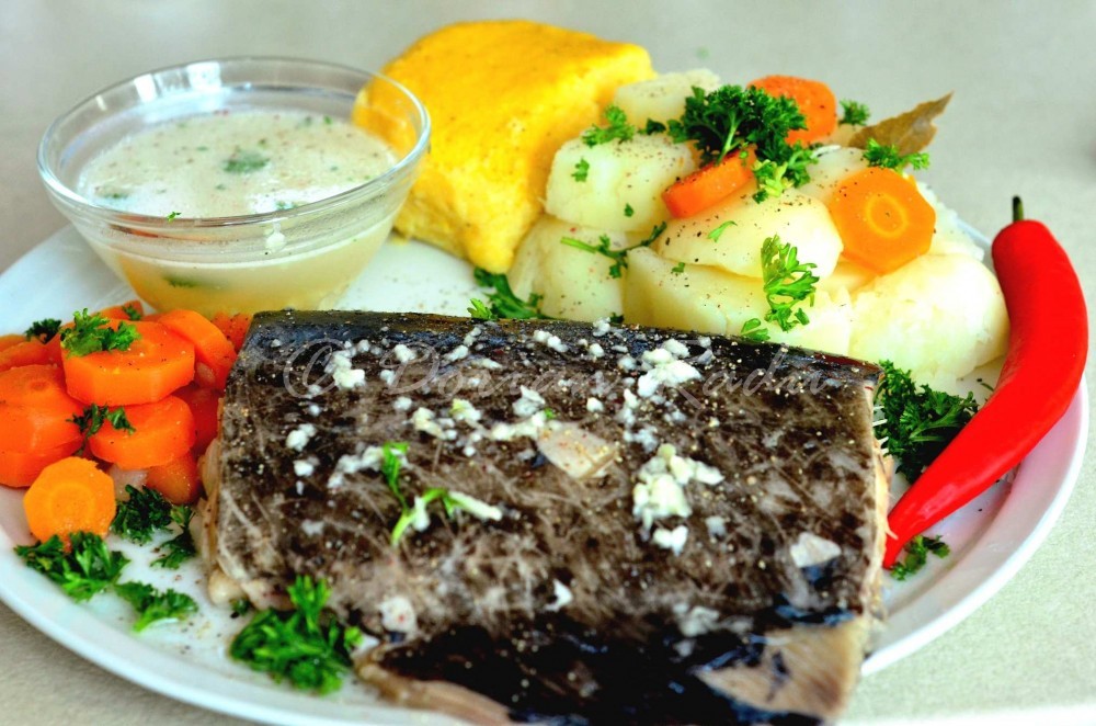 5. se montează pestele și legumele pe un platou, o mămăliga și un vin sec și sprințar este tot ce mai trebuie ca să ne integrăm în absolutul culinar al valurilor Dunării 🙂