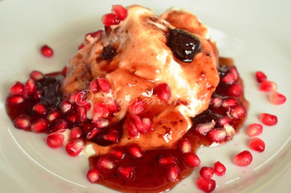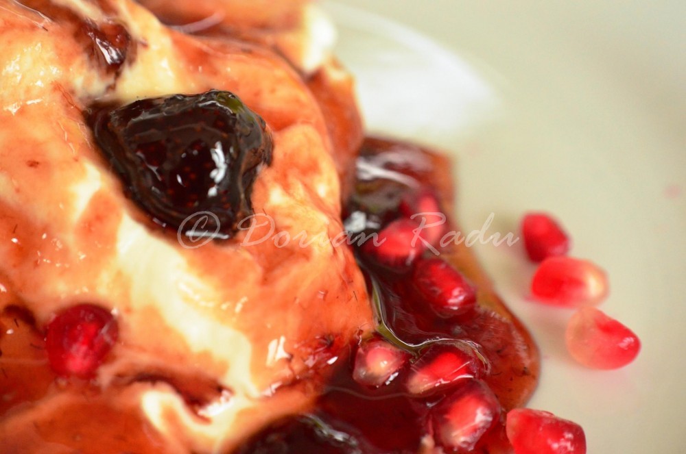 În weekend-ul ce-a trecut am făcut o tură de papanași, întru desfătare și îndestulare – păcătoși mai suntem. Ca să le dau o notă fresh, pe lângă smântâna grasă și dulceața de căpșuni, am pus în farfurii și semințele unei rodii. Nu că a fost ideea mea, dar a fost genială.