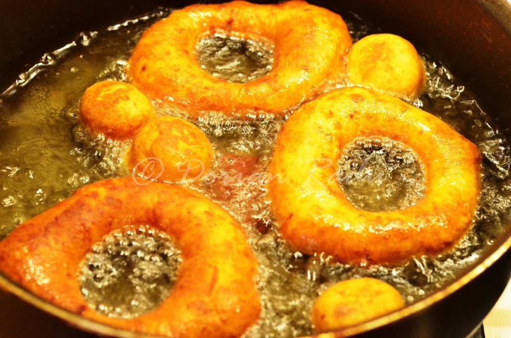4. am încins uleiul, am dat focul mediu, am prăjit gogoșile (cam 3 minute pe fiecare parte) până s-au rumenit