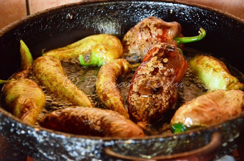 - am spălat ardeii, i-am șters bine de apă (urmează să fie prăjiți în ulei încins, orice picătură de apă va face buba în bucătărie)