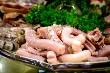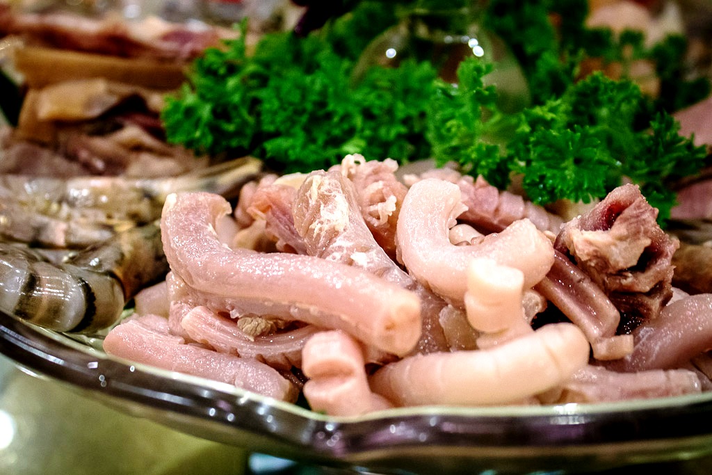 Într-una din zilele trecute am făcut o vizită prin hala de carne Obor, unde sortimentele se diversifică constant după cererea chinezilor. De această dată am găsit două ingrediente noi, cel puțin pentru mine în general și pentru piața românească în special, cu etichete pe care scria doar în chineză: tendoane de copită de vită și “…” de bou (foto dreapta), ca s-o citez pe vânzătoare, în care punctele de suspensie au fost un moment de tăcere din partea vânzătoarei, când am întrebat-o ce sunt chestiile ciudate din galantar. Nu mi-a picat fisa din prima secundă așa că am insistat: ce…de bou ?! Mi-a aratat discret degetul mijlociu…aaa, măciucă de bou ?!? Fix!