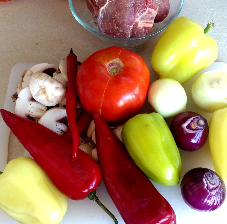 - restul de legume le spalam si taiem: ceapa pestisori grosieri, ardeiul patratele, ciupercile felii mari si subtiri, daca folosim rosie proaspata o decojim si o taiem marunt cu tot cu seminte, usturoiul si ardeiul iute felii