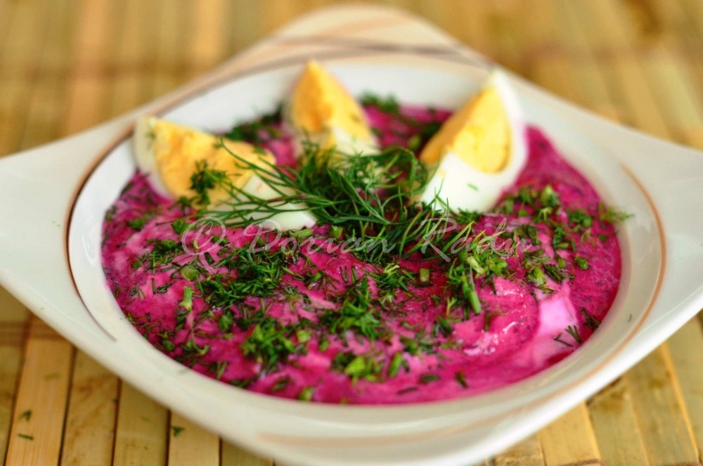 Am pus aseară câteva sfecle roșii la fiert, astăzi în 15 minute a fost gata supa, am lăsat-o la frigider să se răcească, a fost visul unei zi toride de vară. Tradițional, se consumă cu cartofi fierți – calzi, am sărit peste cartofi, ne-am mulțumit cu supa răcoritoare.