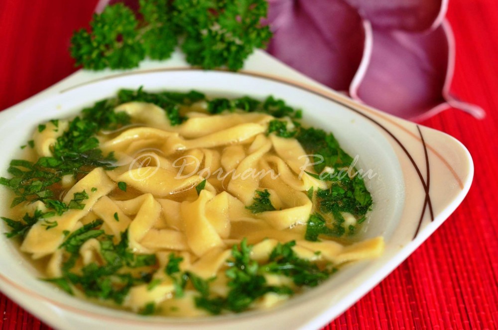 - am scos toate legumele si carnea din oala, am adaugat taieteii, i-am lasat la fiert 3 min si asta a fost supa, stropita cu un praf de sare, piper si patrunjel tocat fin.