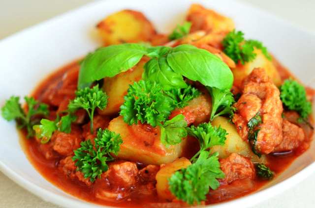 tocana de cartofi cu carne. vegetala