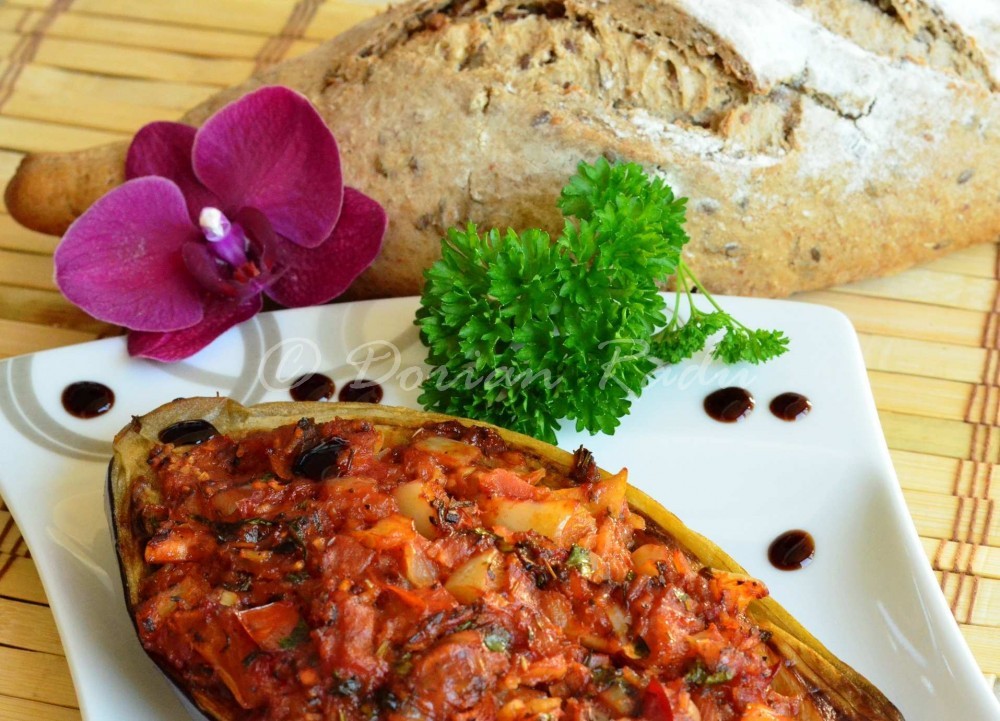 Cu gandul la o sfanta papoutsakia facuta de nasa Anna pe malul Egeii, mi-am adus aminte ca e post. Am traversat Egeea si am recurs la o delicioasa vanata umpluta cu legume de natie turceasca, in traducere libera, placerea imamului. Combinatia de vanata cu usturoi, ardei iute, cimbru si ceva legume, stropita din belsug cu ulei de masline, te face sa uiti cu totul ca este post, cred si eu ca respectabilul imam s-a cutremurat de placere. Abia am reusit sa fac 2 -3 poze, ca au si disparut vinetele din peisajul mesei de pranz.